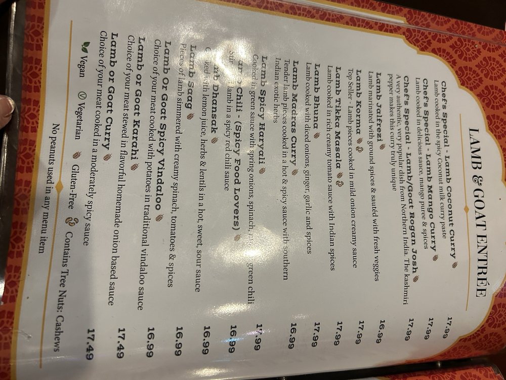 Lamb cooked in delicious sauce, mango puree and spices. Gluten-free.